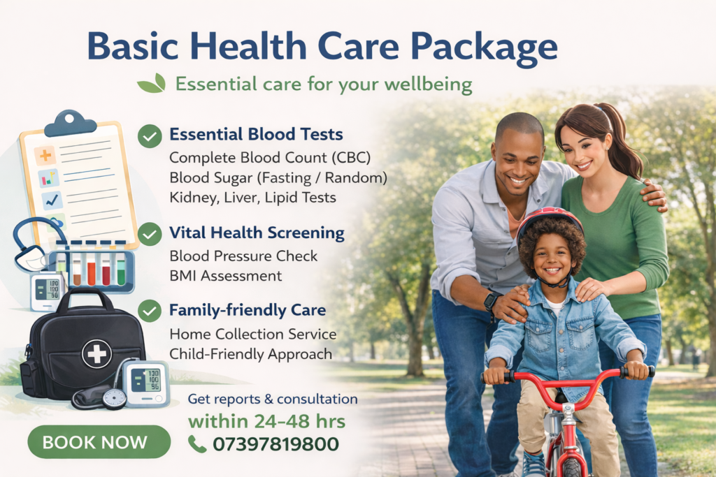 Health Care Packages Basic Health Package Package Details Basic Health Care PackageCBC+ESRRandom Blood SugarLiver Function TestRenal Function TestUrine RoutineIron Profile Total Cost = Rs 1,200/- Book Now